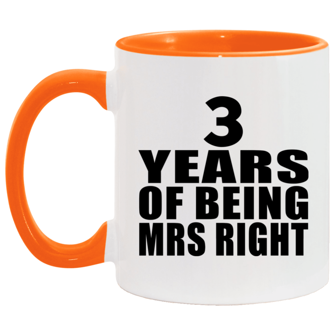 3rd Anniversary 3 Years Of Being Mrs Right - 11oz Accent Mug Orange