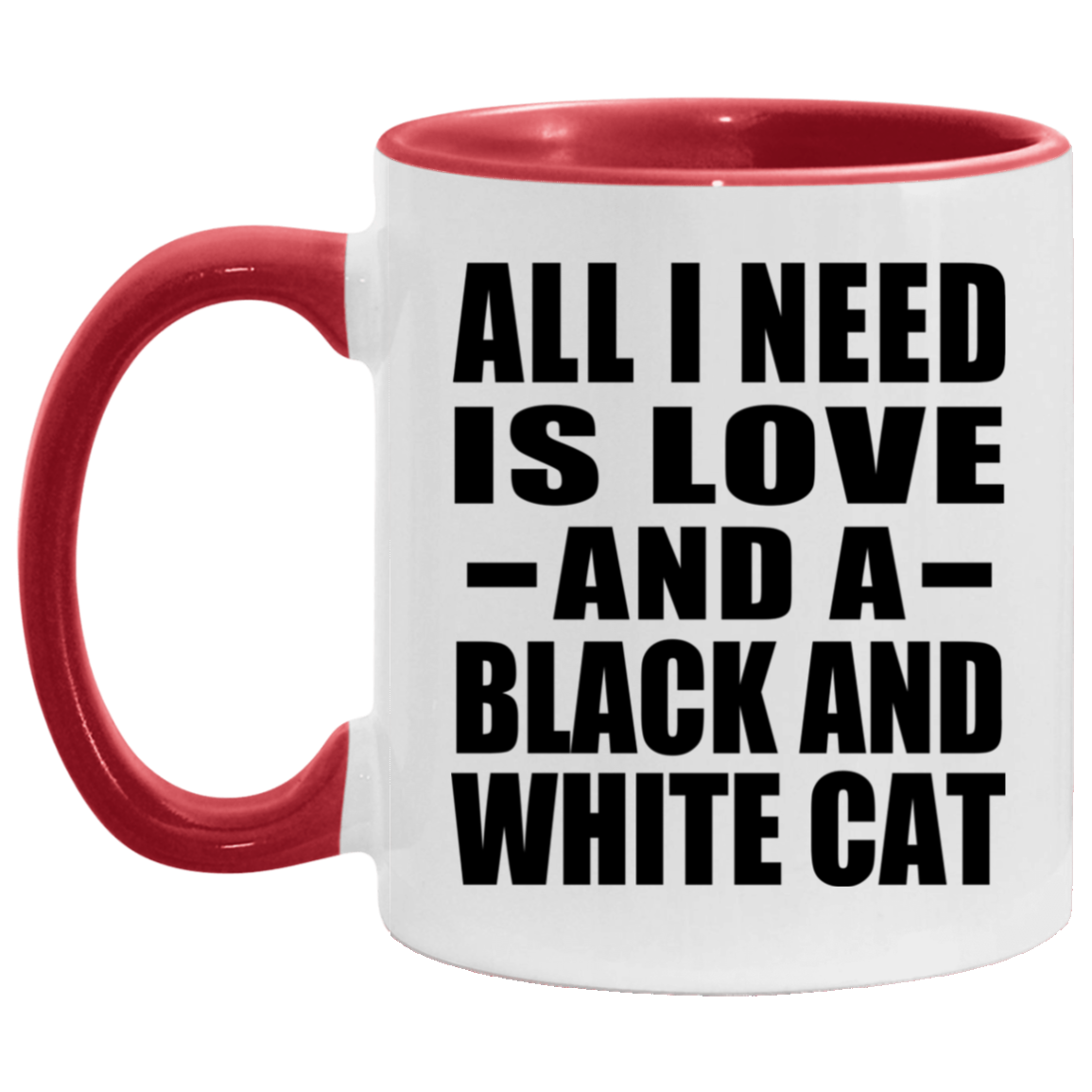 All I Need Is Love And A Black And White Cat - 11oz Accent Mug Red