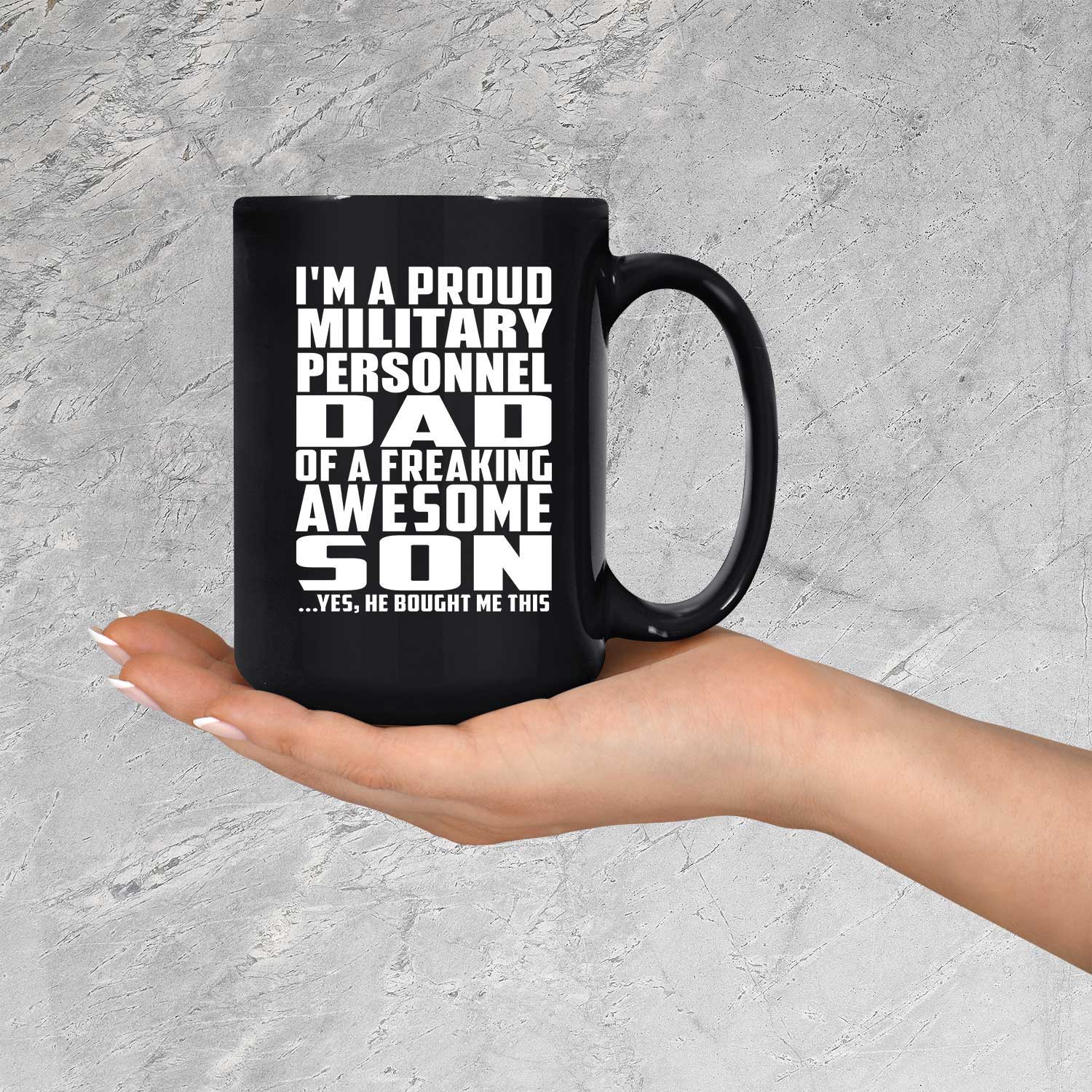 Proud Military Personnel Dad Of Awesome Son - 15 Oz Coffee Mug Black