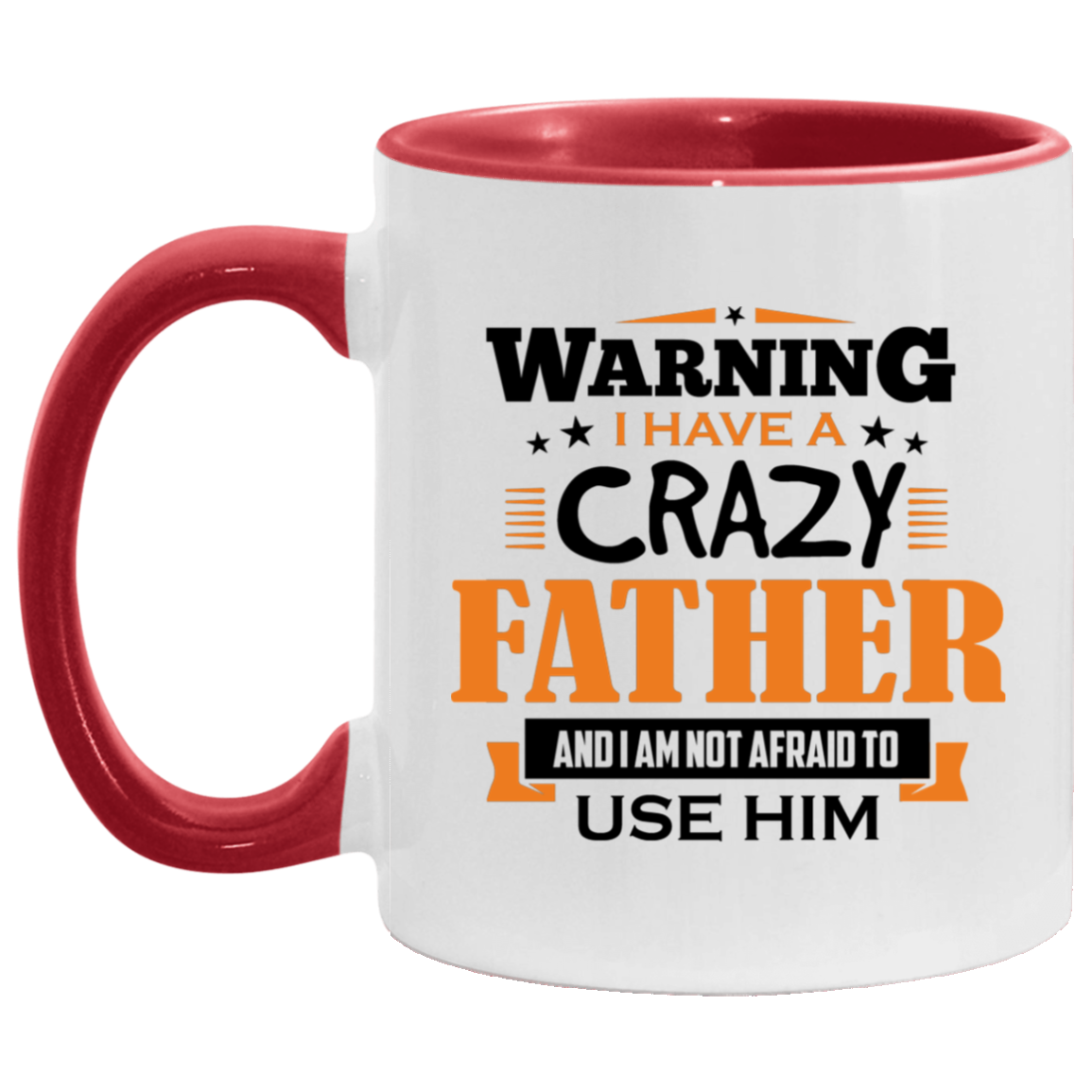 Warning I Have A Crazy Father & I Am Not Afraid To Use Him - 11oz Accent Mug Red